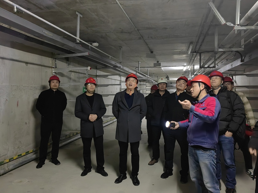 在金橋北路管廊現(xiàn)場(chǎng),蔣征波總經(jīng)理、方曉副總經(jīng)理實(shí)地踏勘了管廊控制中心、水力艙及電力艙,了解廊體內(nèi)部監(jiān)測(cè)方案及項(xiàng)目后期運(yùn)營(yíng)收益情況,并針對(duì)提升管理水平等方面工作提出新要求。
