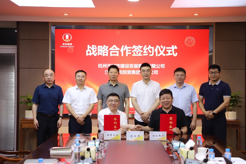 在市城建發(fā)展集團黨委副書記、總經(jīng)理謝偉和江蘇東和集團黨委書記、董事長朱亞洲的見證下,杭州城發(fā)物流產(chǎn)業(yè)有限公司與如東縣福源土地開發(fā)有限公司簽訂了戰(zhàn)略合作協(xié)議。