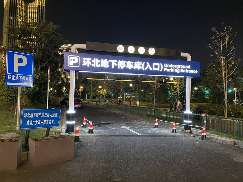 環(huán)北車庫(kù)緊鄰杭州大廈、坤和中心、杭州中心、西湖文化廣場(chǎng)等大型綜合體和寫字樓,日常臨時(shí)停車的“新車主”占比較大,不少車主反映,希望能有更醒目的停車指示導(dǎo)引。為此,城發(fā)資管公司精心研究,推動(dòng)提升改造,由浙江大學(xué)建筑設(shè)計(jì)研究院有限公司設(shè)計(jì)的環(huán)北車庫(kù)入口龍門架已于國(guó)慶期間投入使用,獲得了市、區(qū)兩級(jí)城管局和交警部門的大力支持和認(rèn)可。龍門架橫跨6.4m,高4.2m,采用不銹鋼激光切割,內(nèi)置LED亮燈,在精準(zhǔn)有效加快停車引流的同時(shí),也為武林門碼頭增添了夜景新亮點(diǎn)?。