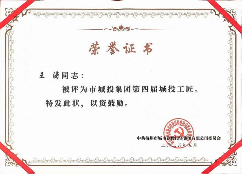近日,市城投集團(tuán)發(fā)布《關(guān)于表彰市城投集團(tuán)第四屆“城投工匠”的決定》,集團(tuán)所屬管廊公司運維管理部(兼地下管道公司智慧運維分公司支撐保障中心副主任)王濤獲評“城投工匠”。